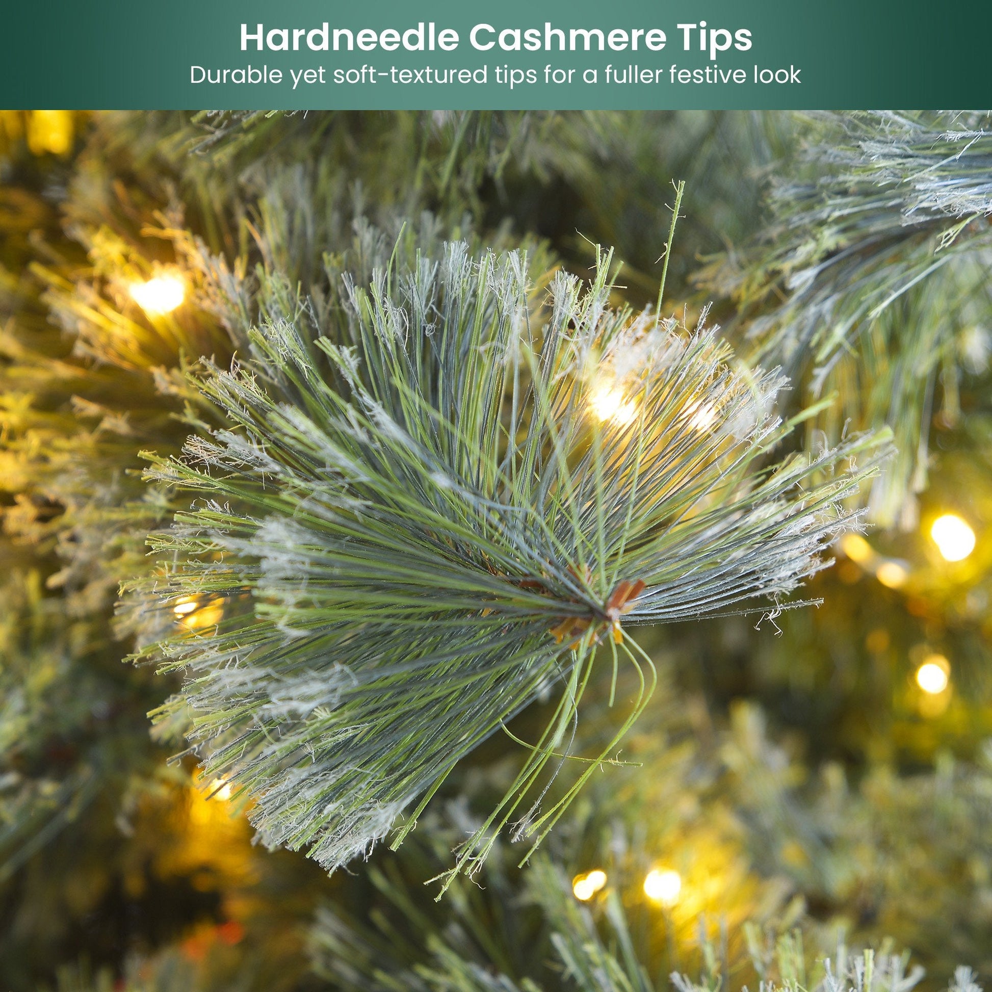 Add timeless elegance to your home with the Christabelle Cashmere Pine Christmas Tree. Pre-lit with 300 multicolour LED lights, it creates a magical festive glow, while its 600 hard needle cashmere tips deliver lush density and a soft, realistic texture for a premium look. Designed with sturdy construction and effortless assembly, this tree brings lasting style for many seasons. A stunning holiday centrepiece, it blends traditional charm with refined detail, making it the perfect fit for any Christmas celebration.