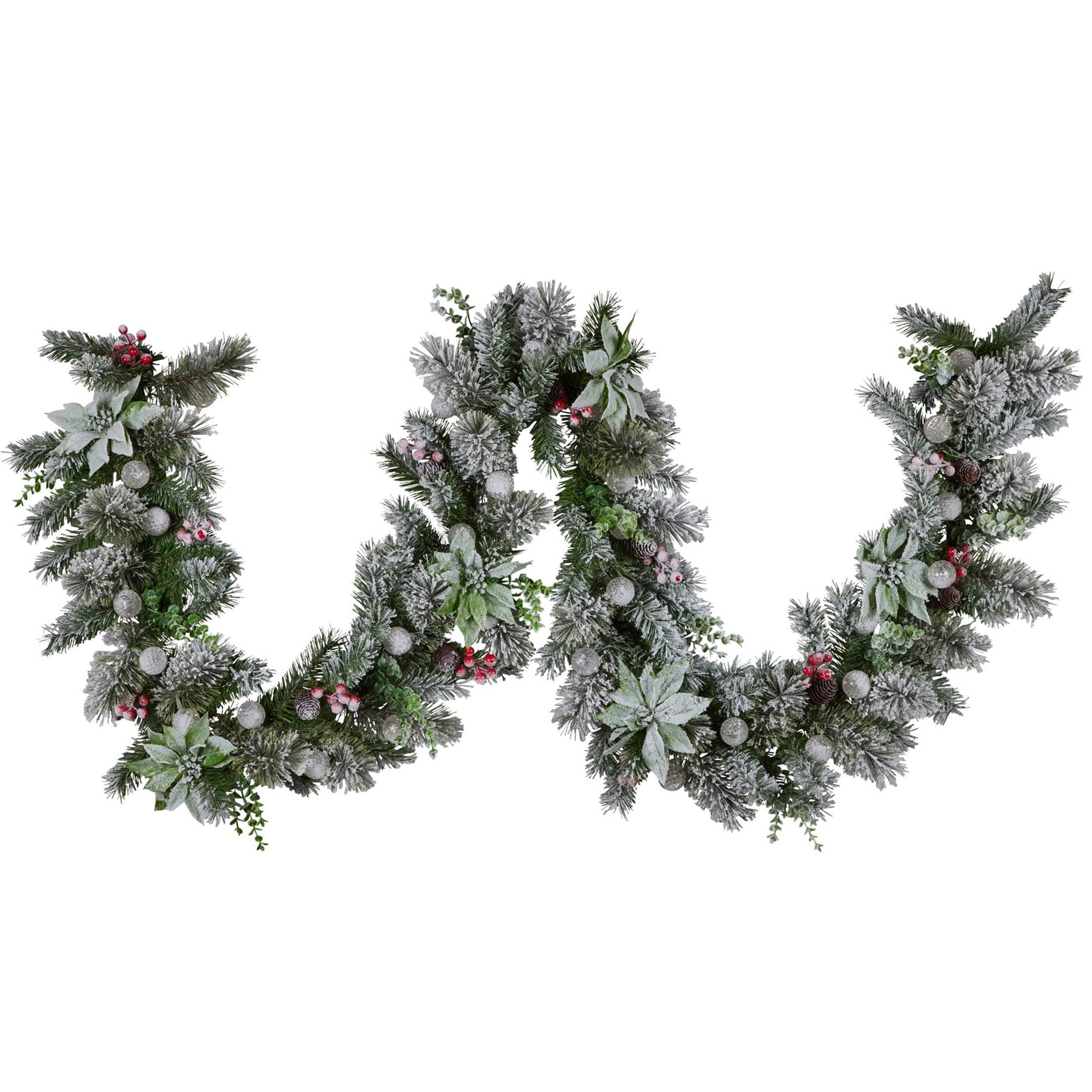 Christabelle 2.7m Snowy Christmas Garland with LED Coloured Baubles Lights Tree Decoration Ornament