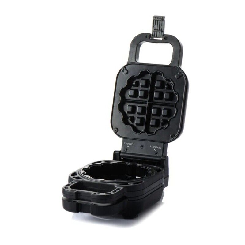 - Electric flip-style waffle press designed to cook both traditional and stuffed waffles with equal ease