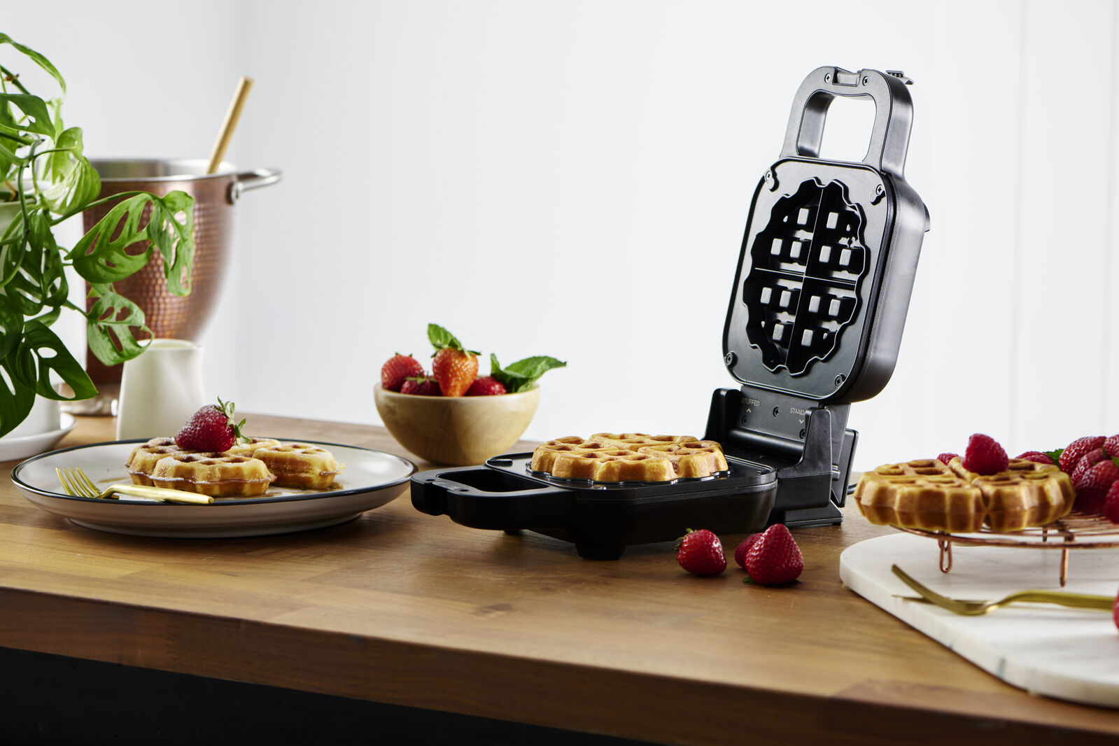Combines modern design with effortless functionality for perfectly baked waffles every time - stuffed or classic!