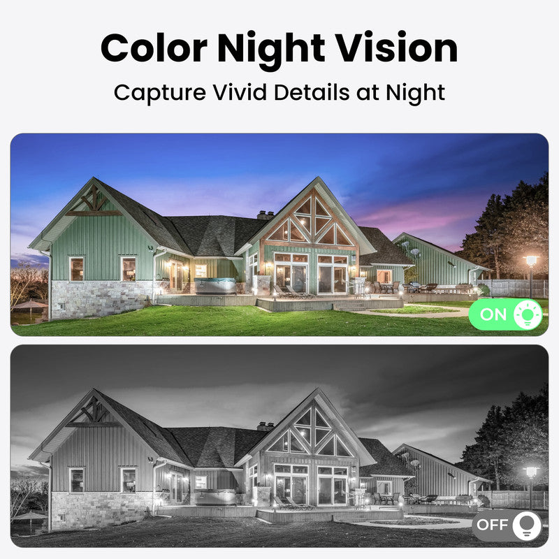 With spotlights illuminating your surroundings, it captures clear nighttime footage with vibrant colors and rich details, ensuring you never lose sight, day or night.