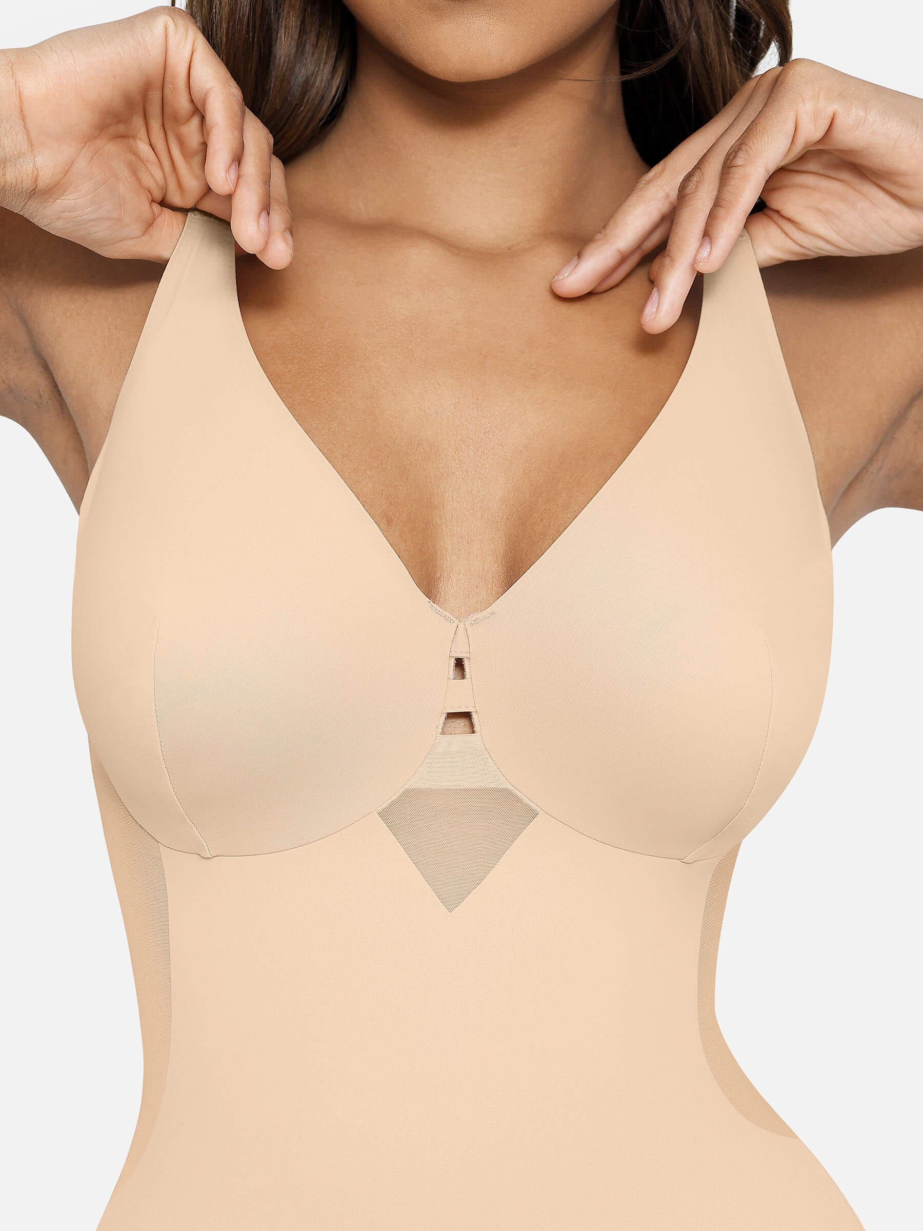 No bra needed! Bust double-layered fabric + steel rings achieve the perfect underwire-free lift. Adjustable straps let you customize your fit. Like all our bodysuits, pair this with your favorite bottoms or wear under a dress for smooth, sculpted curves.