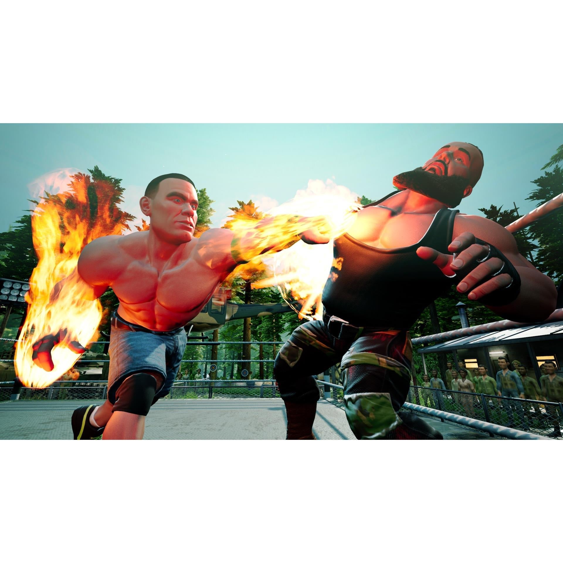 The world of WWE is your battleground with all-new, over the top, in-your-face arcade action as your favorite WWE Superstars and Legends battle it out in outlandish interactive environments around the world. Compete with your friends in your favorite match types with an arsenal of exaggerated maneuvers, special abilities, and devastating power-ups, including Steel Cage, Royal Rumble, Fatal Four Way and more, as Mauro Ranallo and Jerry “The King” Lawler call all the mayhem! Are you ready to enter the battleground?